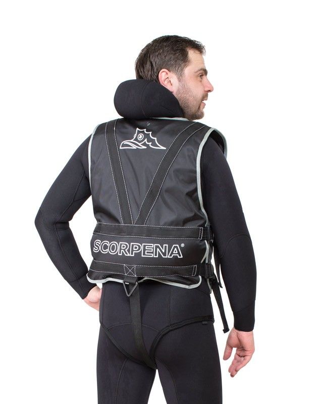 Scorpena weight harness relieves the lower back, distributing the weight on the spearfisher’s back more evenly. It is usually used with neoprene wetsuits thicker than 5 mm.