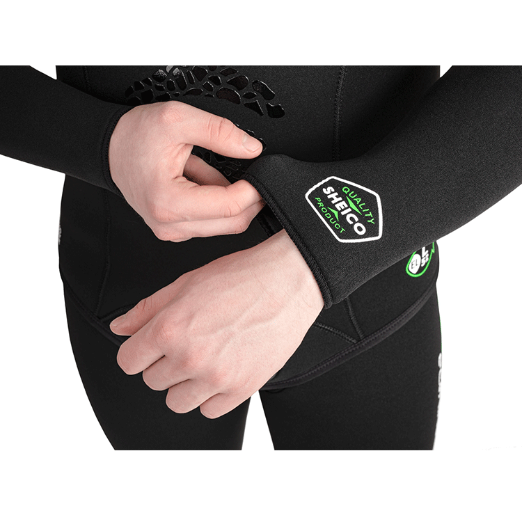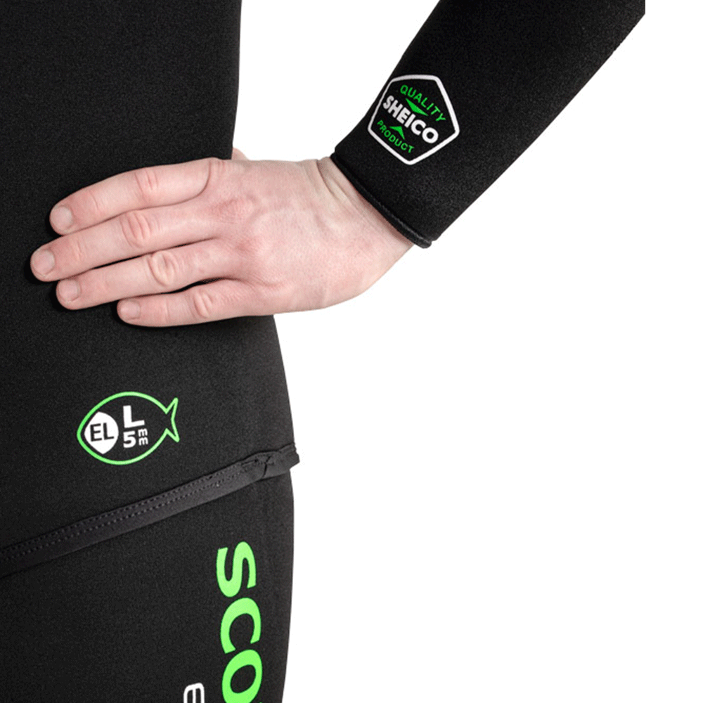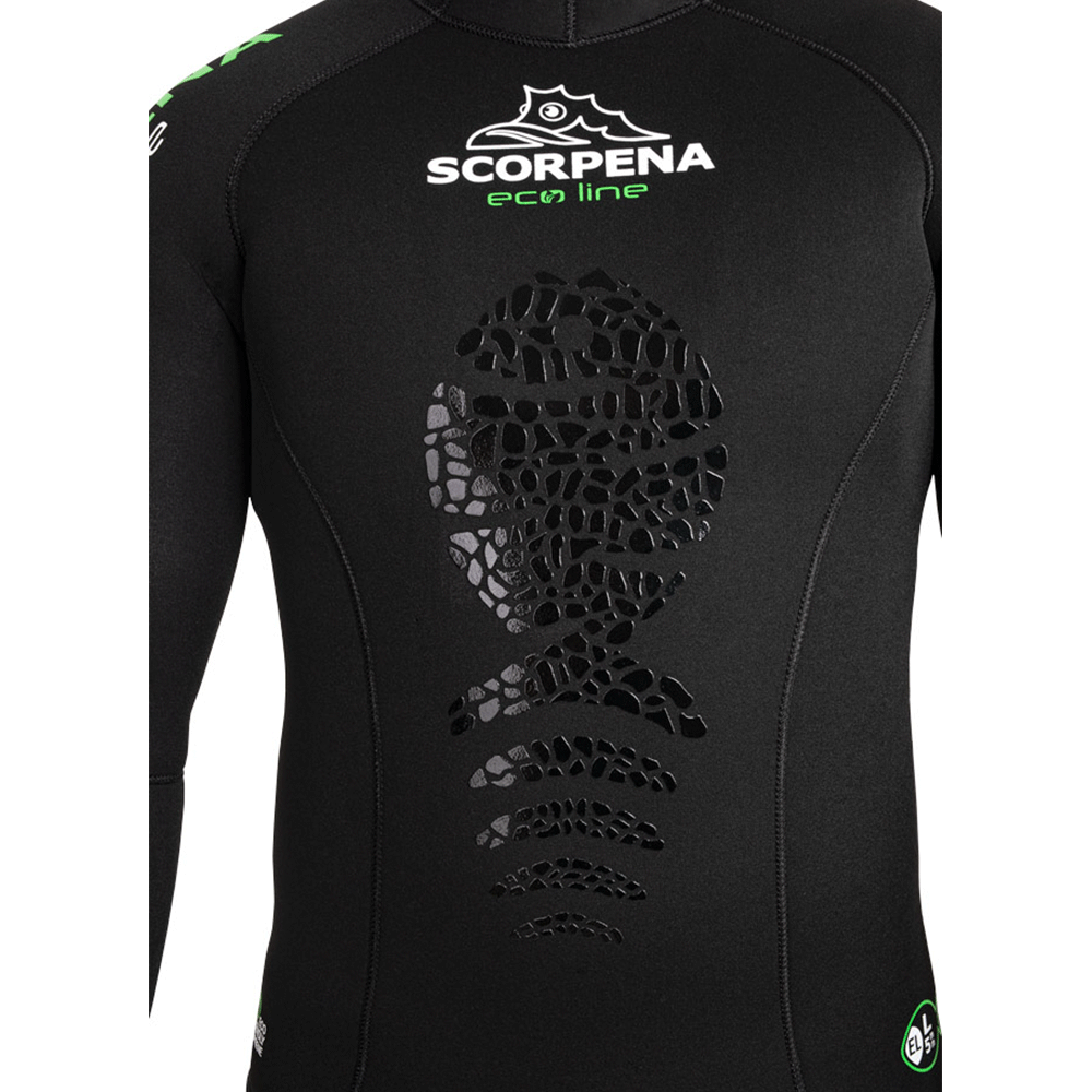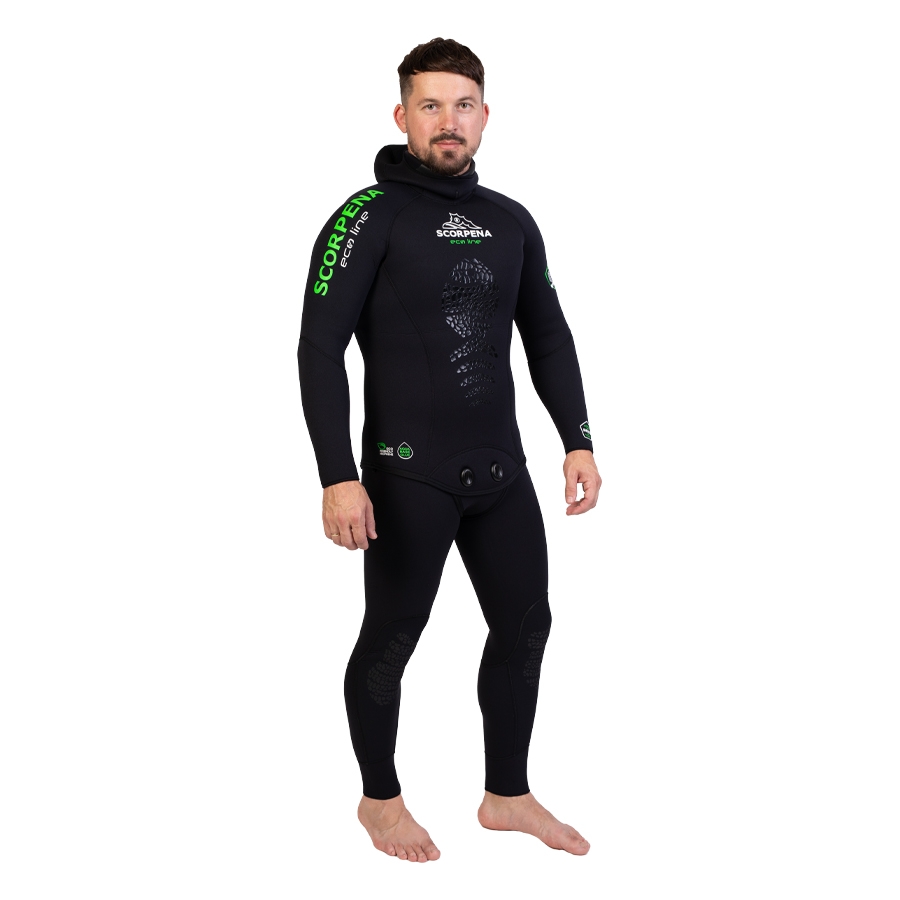 Scorpena EcoLine hidrotērpi ir izgatavoti no ļoti izturīga, mīksta un ekoloģiska Sheico neoprēna, līmēti, izmantojot jaunu ūdens bāzes līmi bez smakas (neizmantojot ķīmiskos šķīdinātājus).