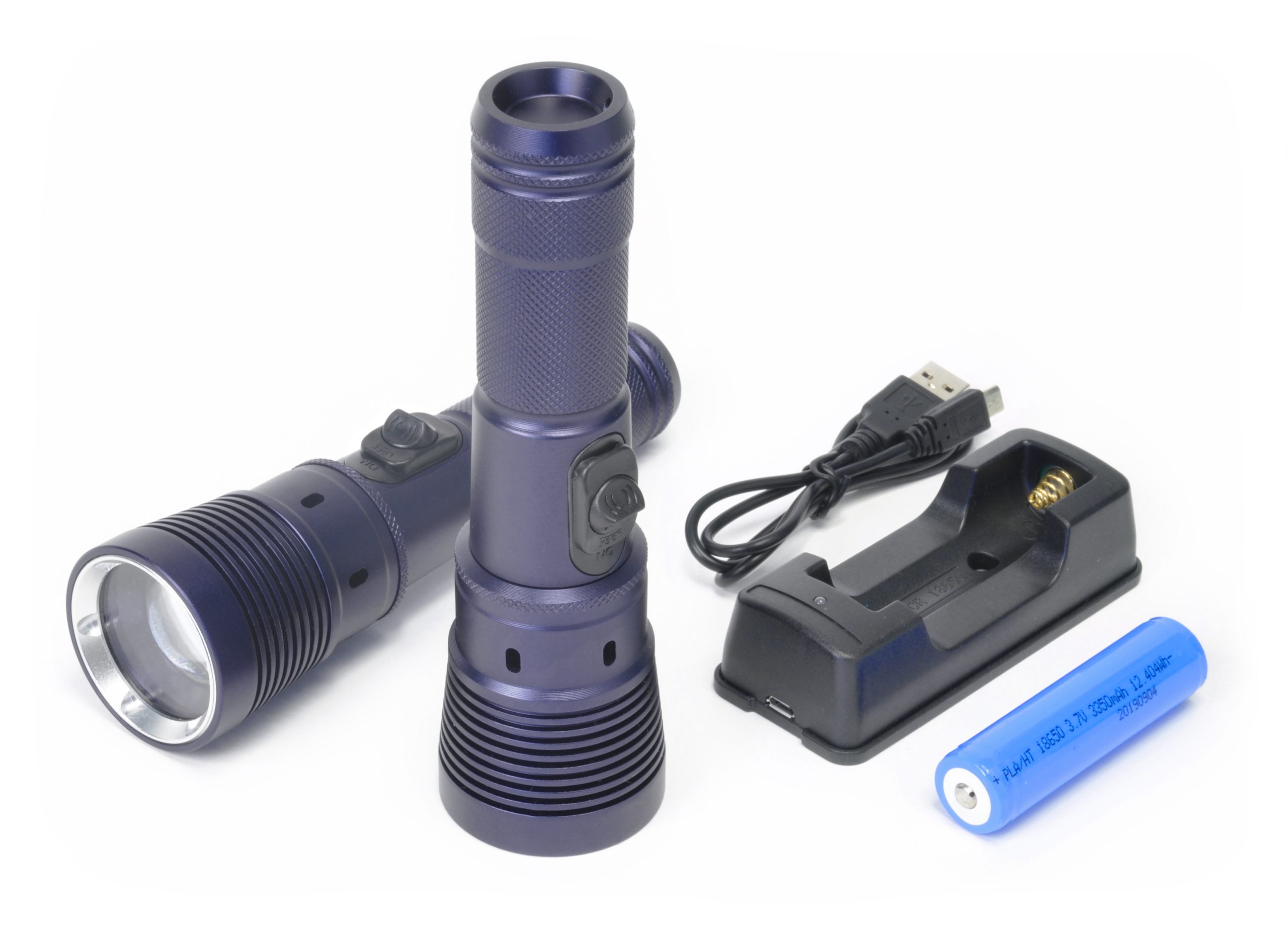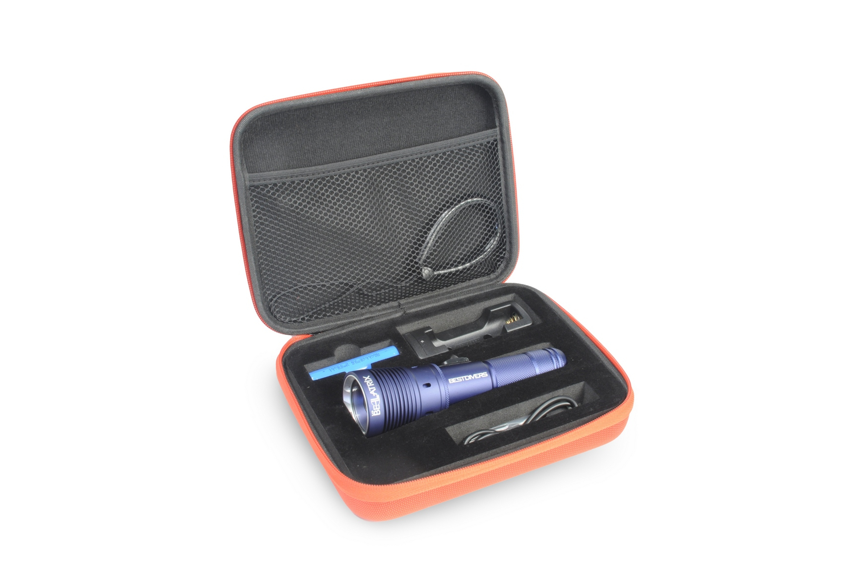 | Package | Cardboard box, elastic wrist strap, spare O-rings, orange sticker-filter, adapter for batteries. Batteries are not included. | Great for use on a speargun as a barrel-mounted flashlight |
