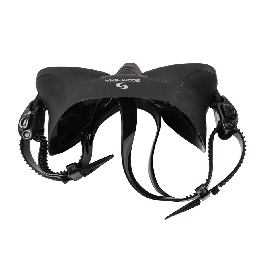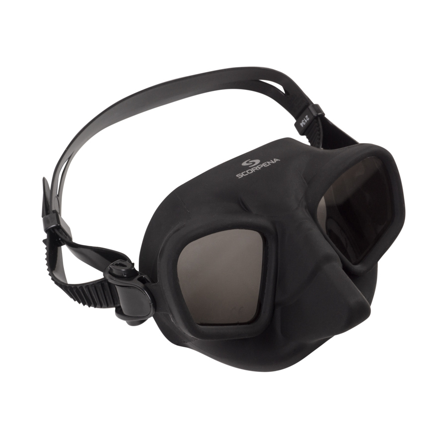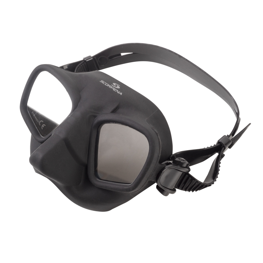 Maskas lēcas ir integrētas tieši silikona blīvējumā, tāpēc tai ir minimāls iekšējais tilpums, kas ļauj izmantot ļoti maz gaisa, lai kompensētu spiedienu maskas iekšpusē dziļumā.