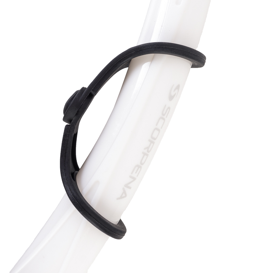 Scorpena F2 trubiņa ir izgatavota no krāsaina mīksta tehnopolimēra, un tās iemutis ir izgatavots no silikona, kas neskar alerģiju saskarē ar ādu. Trubiņai ir noņemams iemutis, kas atbilst korpusa krāsai, un universāls melns stiprinājums maskai.